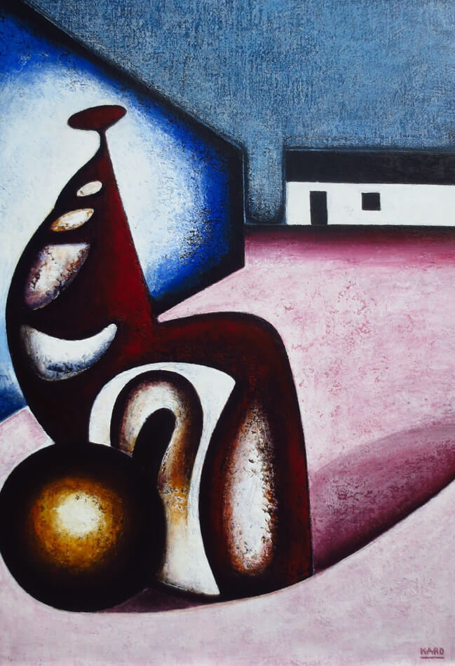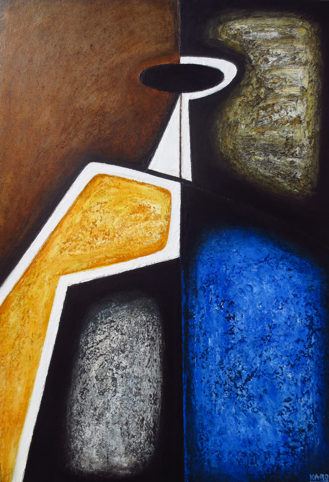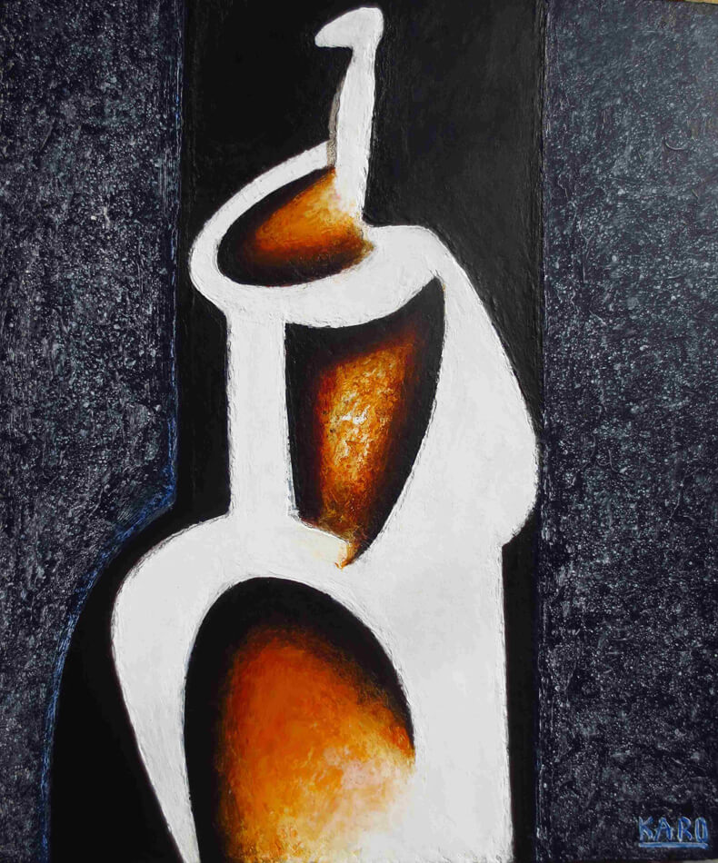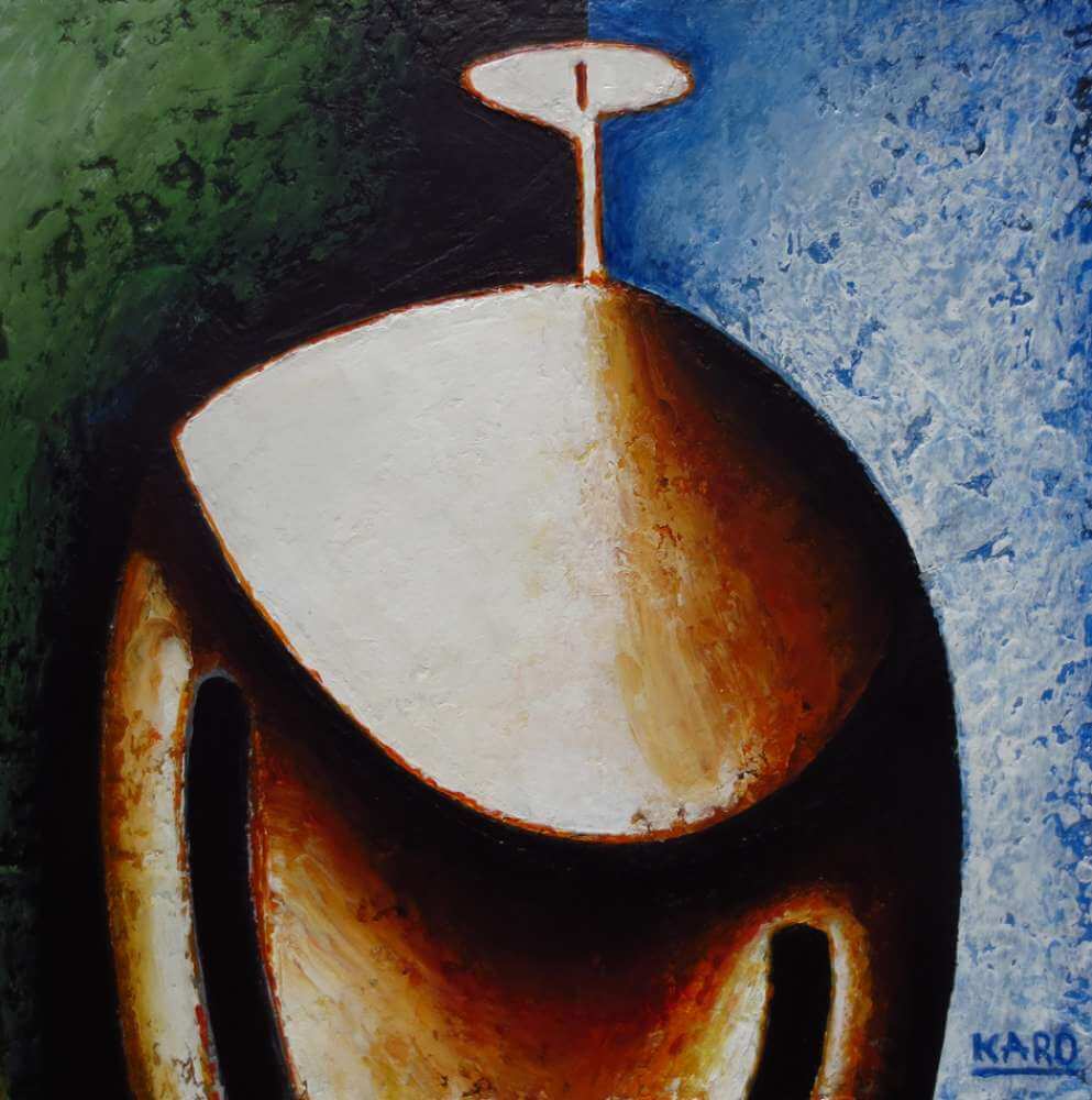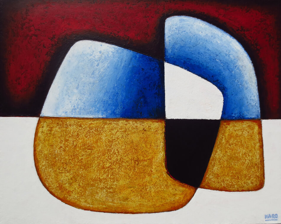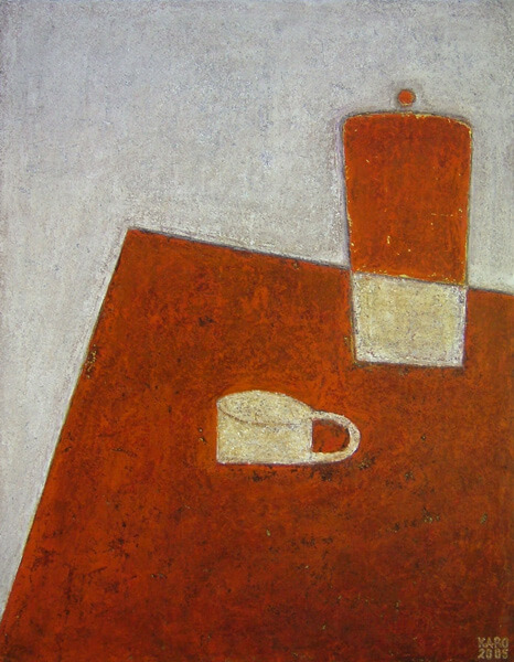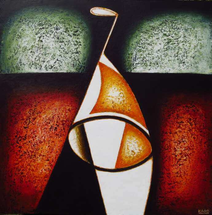 Settled in Montreal since 1997, Karo Alexanian has become more and more successful with collectors who were attracted by his simple lines, geometric compositions and colours, sometimes soft, sometimes vibrant and bright. Karo does not capture detail. His shapes are strongly suggested but not elaborated because Karo focuses only on his own perception of reality, a reality he seeks to generalize and stylize by making symbols out of painted objects.