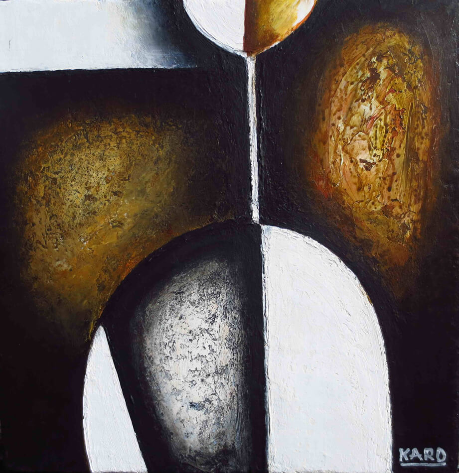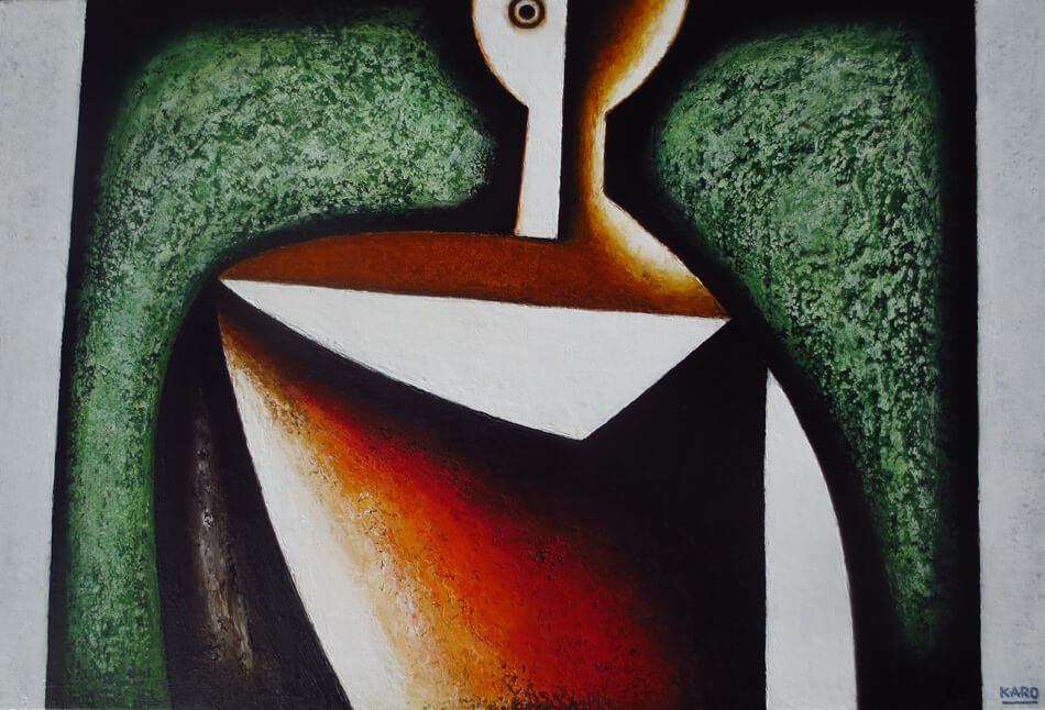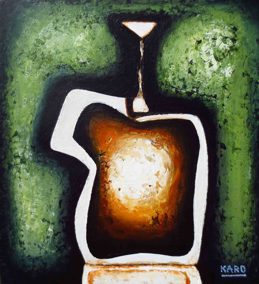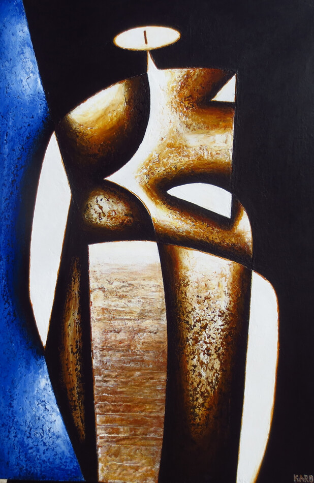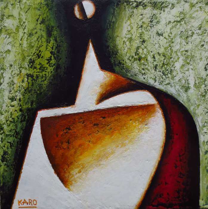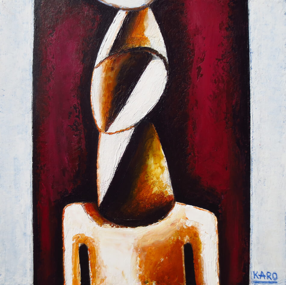 Settled in Montreal since 1997, Karo Alexanian has become more and more successful with collectors who were attracted by his simple lines, geometric compositions and colours, sometimes soft, sometimes vibrant and bright. Karo does not capture detail. His shapes are strongly suggested but not elaborated because Karo focuses only on his own perception of reality, a reality he seeks to generalize and stylize by making symbols out of painted objects.