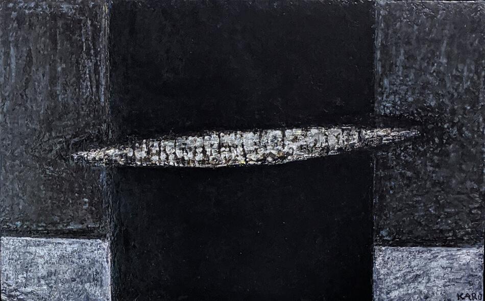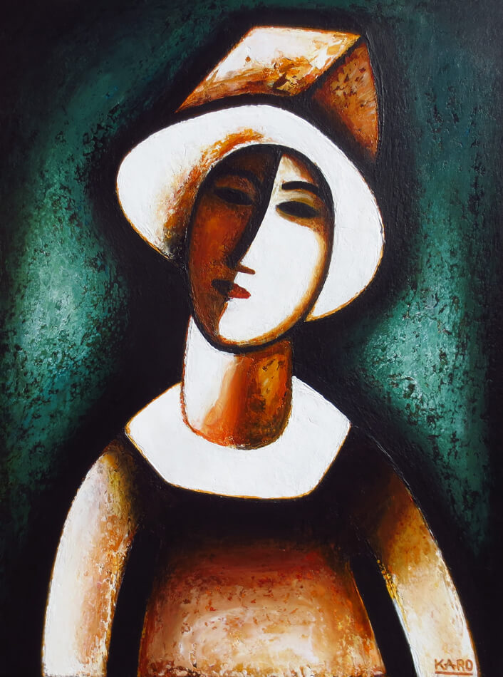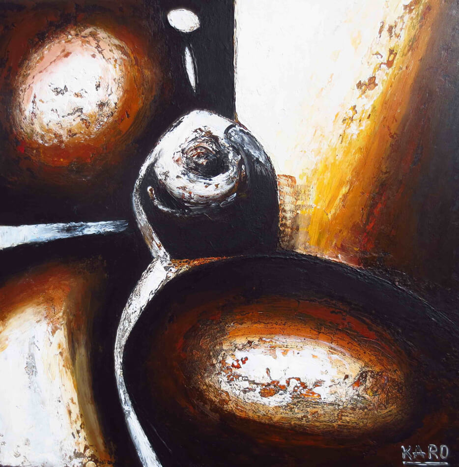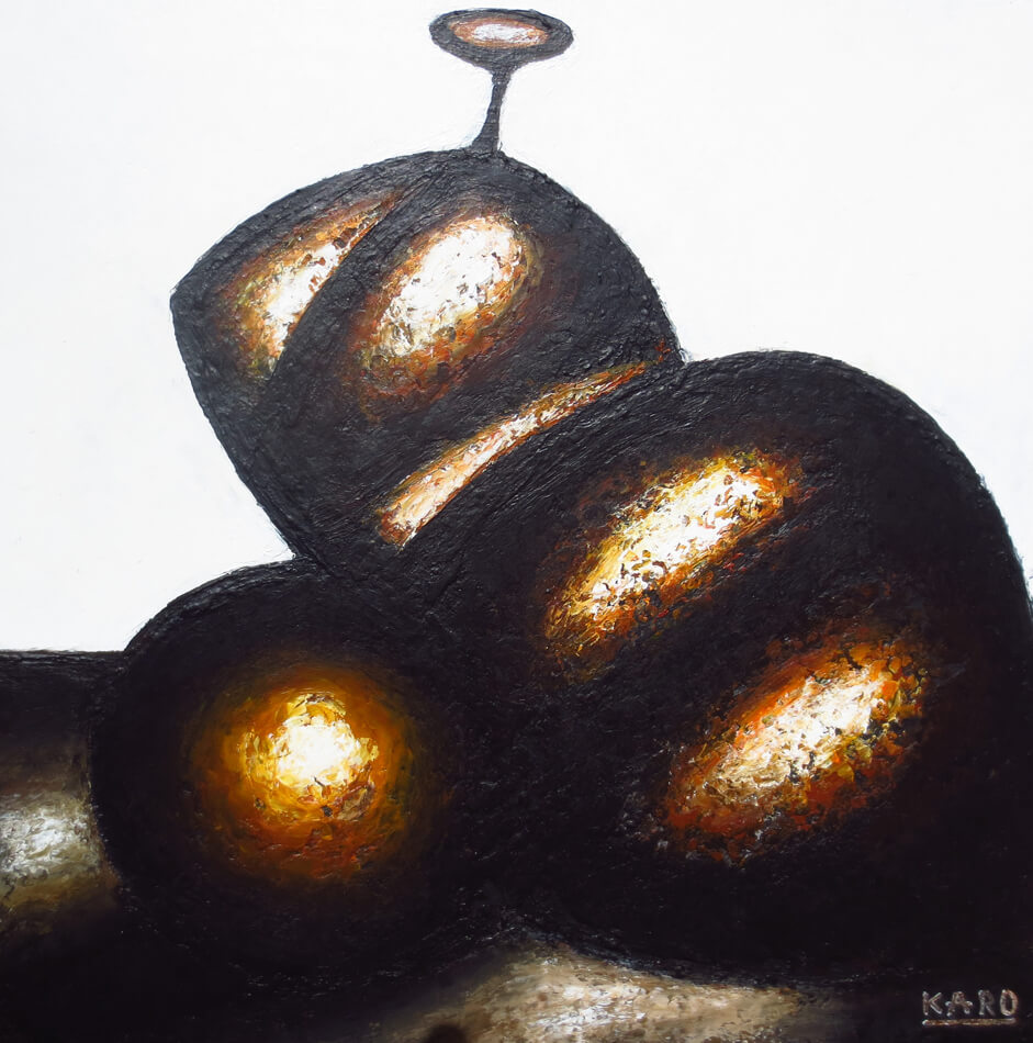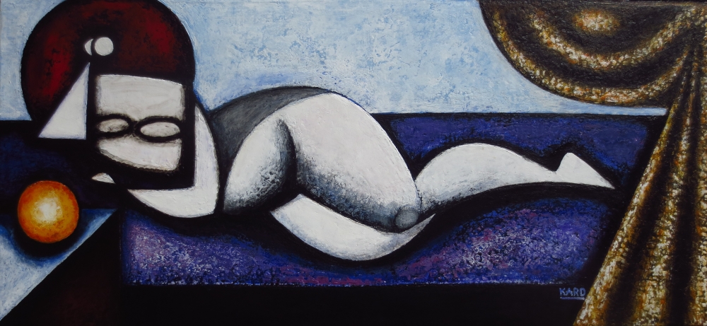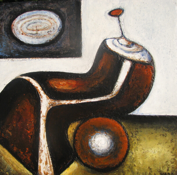 Settled in Montreal since 1997, Karo Alexanian has become more and more successful with collectors who were attracted by his simple lines, geometric compositions and colours, sometimes soft, sometimes vibrant and bright. Karo does not capture detail. His shapes are strongly suggested but not elaborated because Karo focuses only on his own perception of reality, a reality he seeks to generalize and stylize by making symbols out of painted objects.