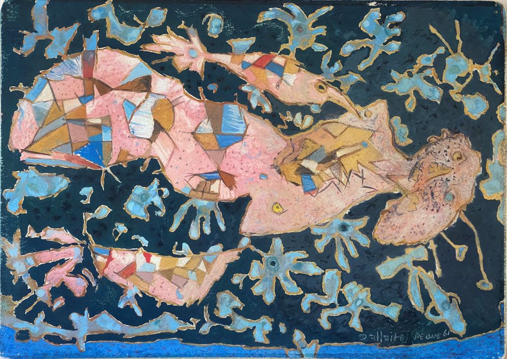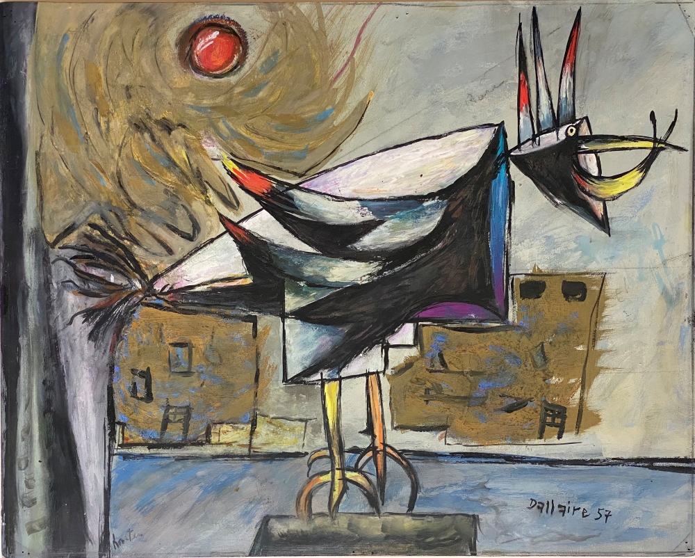 Jean-Philippe Dallaire was born in Hull in 1916 and died in 1965 at the age of 49. He studied art at the École technique de Hull and at Central Technical School of Toronto from 1932 to 1935. In 1938 and 1939, he pursued his studies, first at the École des Beaux-Arts de Montréal and after, at Ateliers d’art sacré and Académie André Lhote in Paris. During the German occupation of Paris, Jean Dallaire and his wife were sent to an internment camp. His wife was released six months later but Dallaire’s internment was extended. This experience deeply impacted his work. After the war, he returned to Canada and taught at the École des Beaux-Arts in Québec City from 1945 to 1952. He was hired by the National Film Board as an animator, first in Ottawa (from 1952 to 1956) and then in Montreal (from 1956 to 1958). Meanwhile, he kept his painting workshop where he created large canvasses reflecting analytical cubism and received tapestry design commissions. Jean Dallaire held several individual exhibitions in France and Canada and was awarded a painting prize by the province of Québec. He lived in Vence, in the southern part of France, until his death.