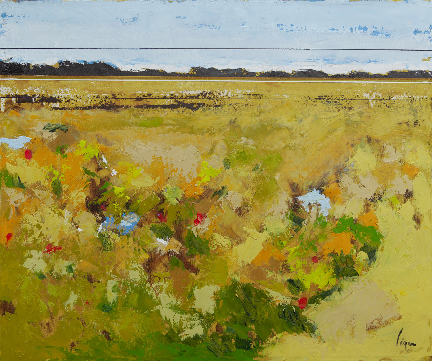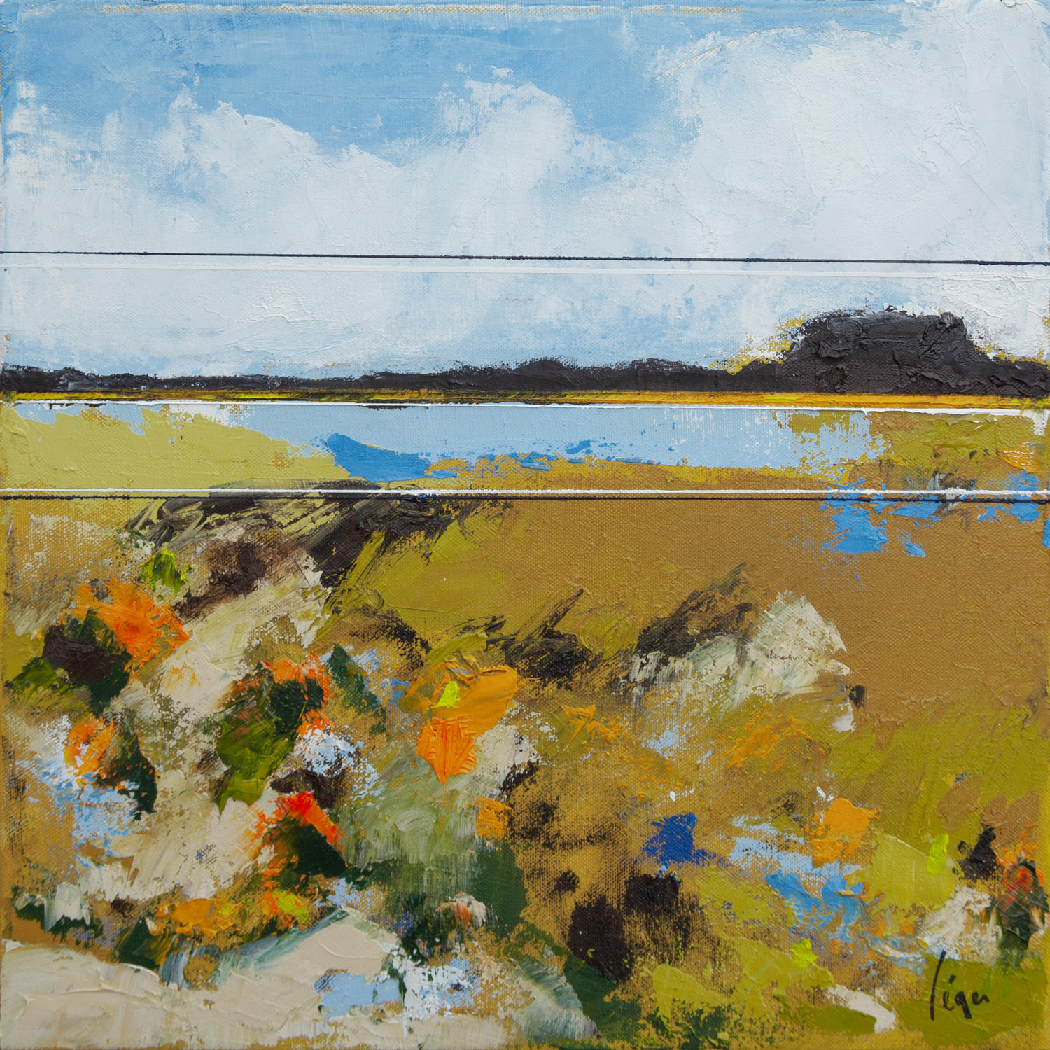For the last two years, I have been working on the Lignes (Lines) series where moments are captured and put on pause. These oil landscapes highlight the expressiveness of lines that carve the space in both a strong and subtle way. In this series which will still develop over numerous phases, each artwork reflects the movement of the landscape and catches an instant in the Outaouais area. These artworks invite a personal and intimate encounter with the Grande Rivière banks which I know very well from my sailing and regatta years.