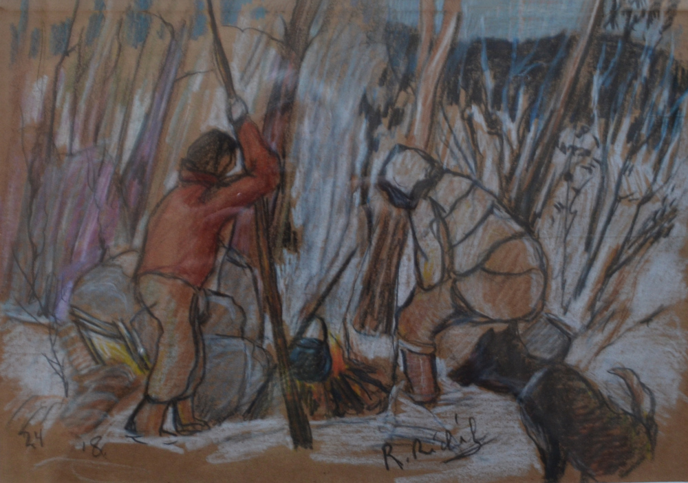 ‘’René Richard is without doubt one of the Canadian painters who best captured the North—its loneliness, rudimentary living conditions, and vast open spaces marked by the seasons. His prolific output stands as an impressive contribution to Canadian art: hundreds of works made up mostly of studies, drawings—a category that encompasses rough sketches, sanguine crayon, charcoal and pencil crayon as well as more detailed oil pochades and drawings in pencil crayon and felt pen—and small and large format oil paintings…Richard’s highly personal and somewhat expressionistic style conveys the struggle for human survival amidst the harsh northern environment of polar deserts, vast forests and rivers.’’ (Esther Pelletier, Professor, Laval University)