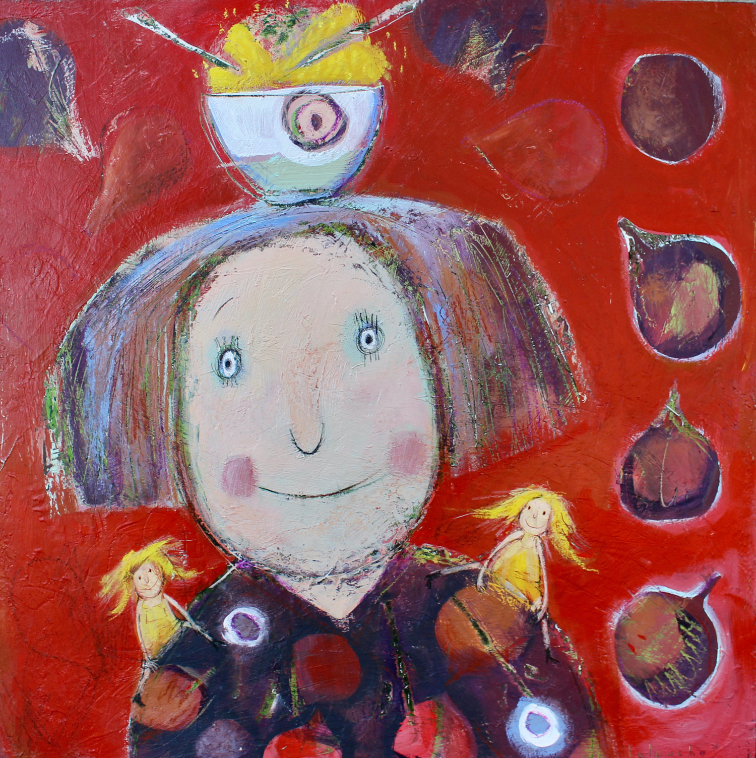 Born in Beauport, Québec, in 1965, Marie-Josée Latouche started to draw at a very young age at the Musée des beaux-arts de Québec workshops. Then, life having led her to others paths, it is only recently that she has returned to her true passion: painting. A self-taught artist, she uses mixed mediums such as acrylics, patterned fabric, wallpaper, and scraping to create on wooden bases her beloved playful themes dominated by a contagious joie de vivre. For Marie-Josée Latouche, creating is "flying through a bunch of tulips, lazing around next to a pear, partying with an orchid…Suddenly finding oneself in the setting of a page in a children's book only for a moment."