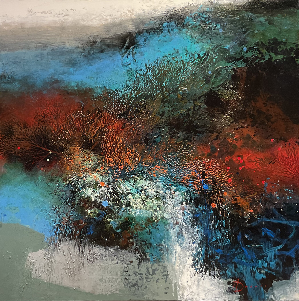 Through their suggestive imagery, my paintings address the presence of these four primal elements, sources of underlying life, intrinsic effervescence, and introspection.