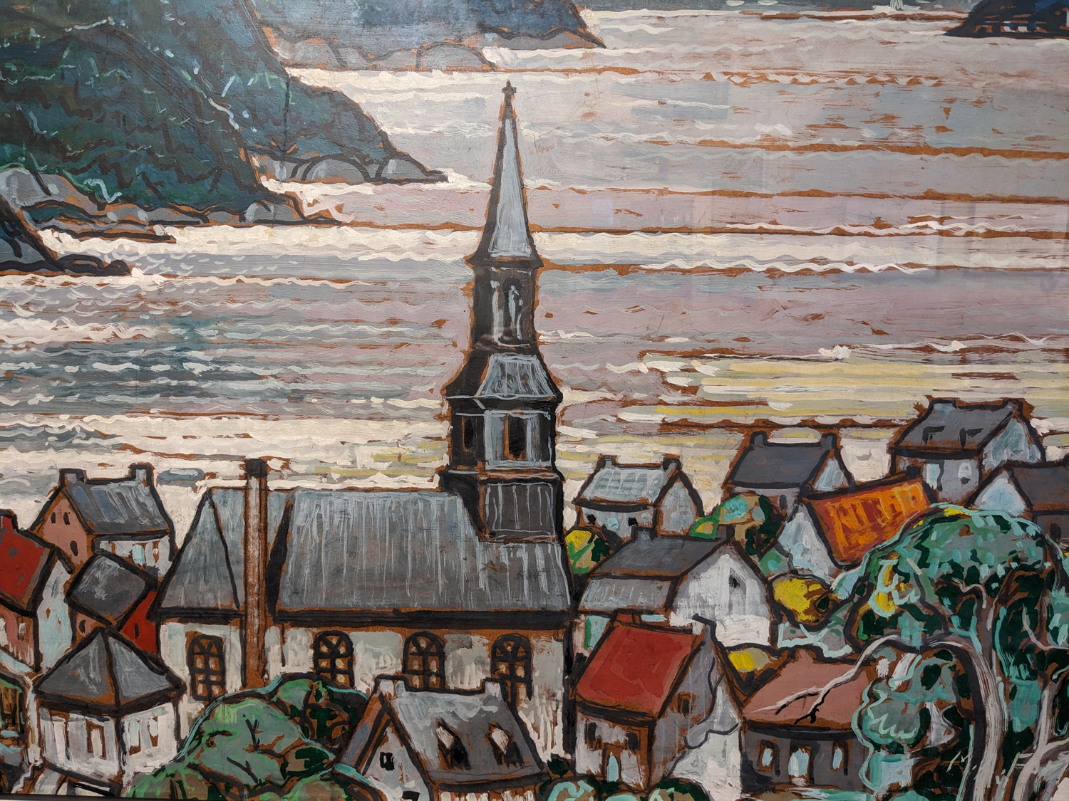 Peintre et graveur québécois, Marc-Aurèle Fortin est né le 14 mars 1888 à Sainte-Rose et est décédé le 2 mars 1970 à Macamic en Abitibi. Dès l’âge de 15 ans, il suit des cours de dessin à l’Académie commerciale catholique de Montréal ainsi qu’à l’école du Plateau sous la direction de Ludger Larose et Edmont Dyonnet. Son père juge, ne prisant guère les velléités artistiques de son fils, l’envoie travailler dans un bureau de poste à Edmonton. Fortin n’en continue pas moins de s’adonner à sa passion et c’est dans cette ville qu’il voit naître sa carrière de peintre avec la vente d’une de ses toiles au montant de cinquante dollars, somme considérable pour l’époque. En 1909, il décide de parfaire sa formation aux États-Unis, à l’Art Institute of Chicago notamment. De retour au Québec en 1912, il est commis dans un bureau de poste à Montréal et peint pendant ses temps libres. Il s’initie à l’aquarelle mais n’étant pas satisfait des résultats, il abandonne temporairement ce médium. En 1919, Fortin peut enfin se consacrer à son art. Il se met à peindre des paysages ruraux et urbains, les uns mettant en valeur le côté pittoresque de la nature avec des arbres surdimensionnés, des maisons rustiques, des charrettes de foin (ses sujets de prédilection), les autres représentant souvent le port de Montréal, le quartier Hochelaga ou Sainte-Rose, son lieu de naissance. Il renoue aussi avec l’aquarelle et crée ses fameuses aquarelles « éponges ». « C’est en pratiquant dans les montagnes de Gaspésie que j’ai réussi à maîtriser l’aquarelle », dira-t-il. En 1934, il part quelques mois en Europe (France et Italie) et rapporte dans ses bagages quantité de croquis et de dessins qui témoignent d’une transformation de style. En effet, son côté lyrique a cédé le pas à l’intensité des tons et au trait plus marqué. « Tous les artistes subissent l’influence des autres pour la technique, le métier. Mais le véritable artiste conserve sa tour d’ivoire, c’est le domaine de l’inspiration, c’est là que l’artiste va chercher ses idées sur l’art. » (Marc-Aurèle Fortin, 1969). C’est aussi à son retour au pays qu’il expérimente la manière noire « pour intensifier la relation entre l’ombre et la lumière », et la manière grise « pour décrire l’atmosphère chaude des ciels du Québec » dira-t-il. En plus de l’huile et de l’aquarelle (qu’il rehausse parfois de fusain ou de pastel), Fortin pratique aussi la gravure, le pastel et à la fin des années 1940, la peinture à la caséine (détrempe à base de lait). Fasciné par ce médium et les tons saisissants qu’il arrive à en tirer, il s’y consacre presque exclusivement jusqu’à ce que la maladie l’oblige à cesser pratiquement de peindre vers 1955.