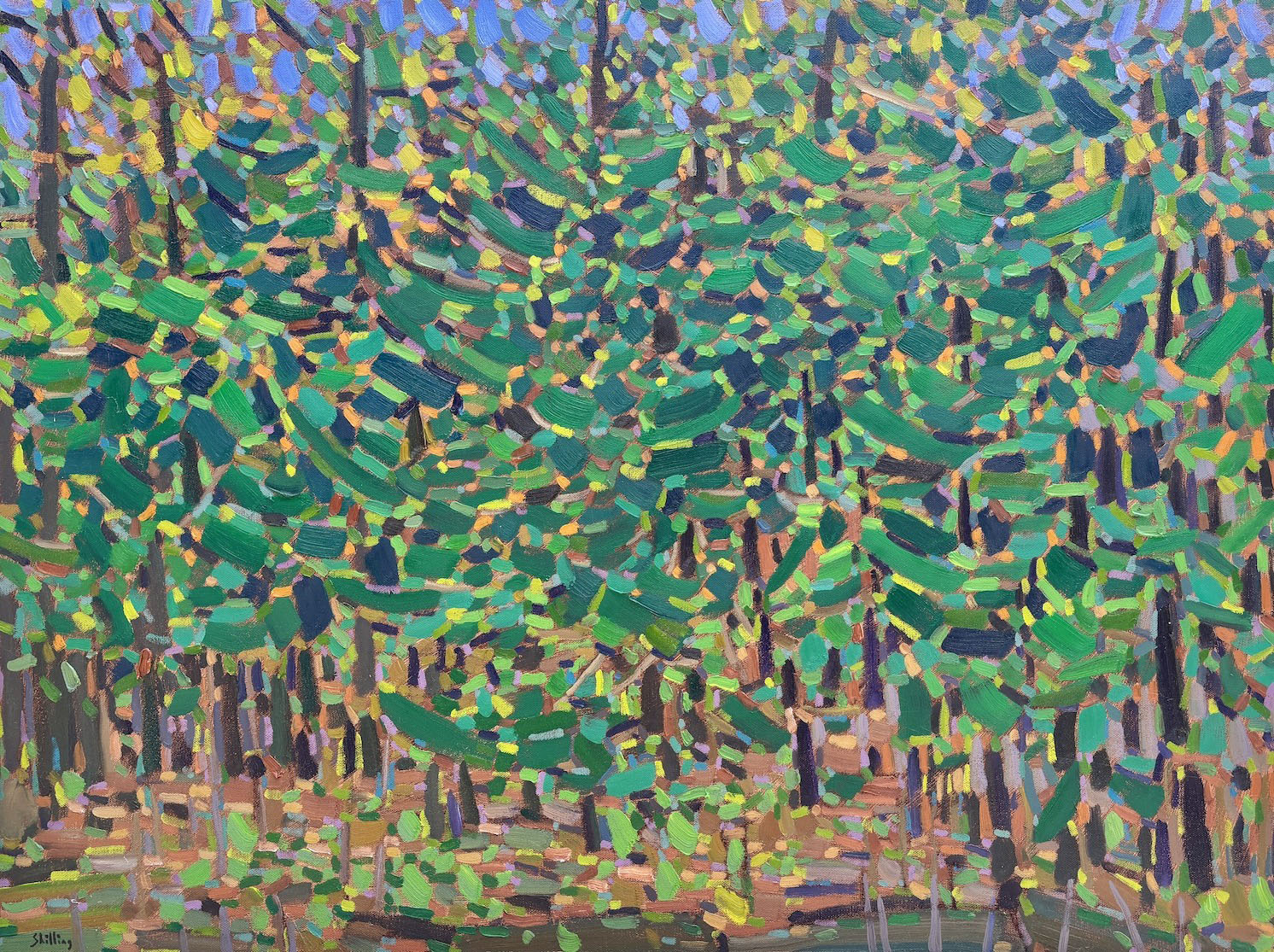 Son travail comprend des toiles inspirées de la rivière Black, qui coule près de son atelier, des esquisses à l’huile du lac Couchiching ainsi que la Forest Series, peinte sur place dans son atelier à Rama, en Ontario.