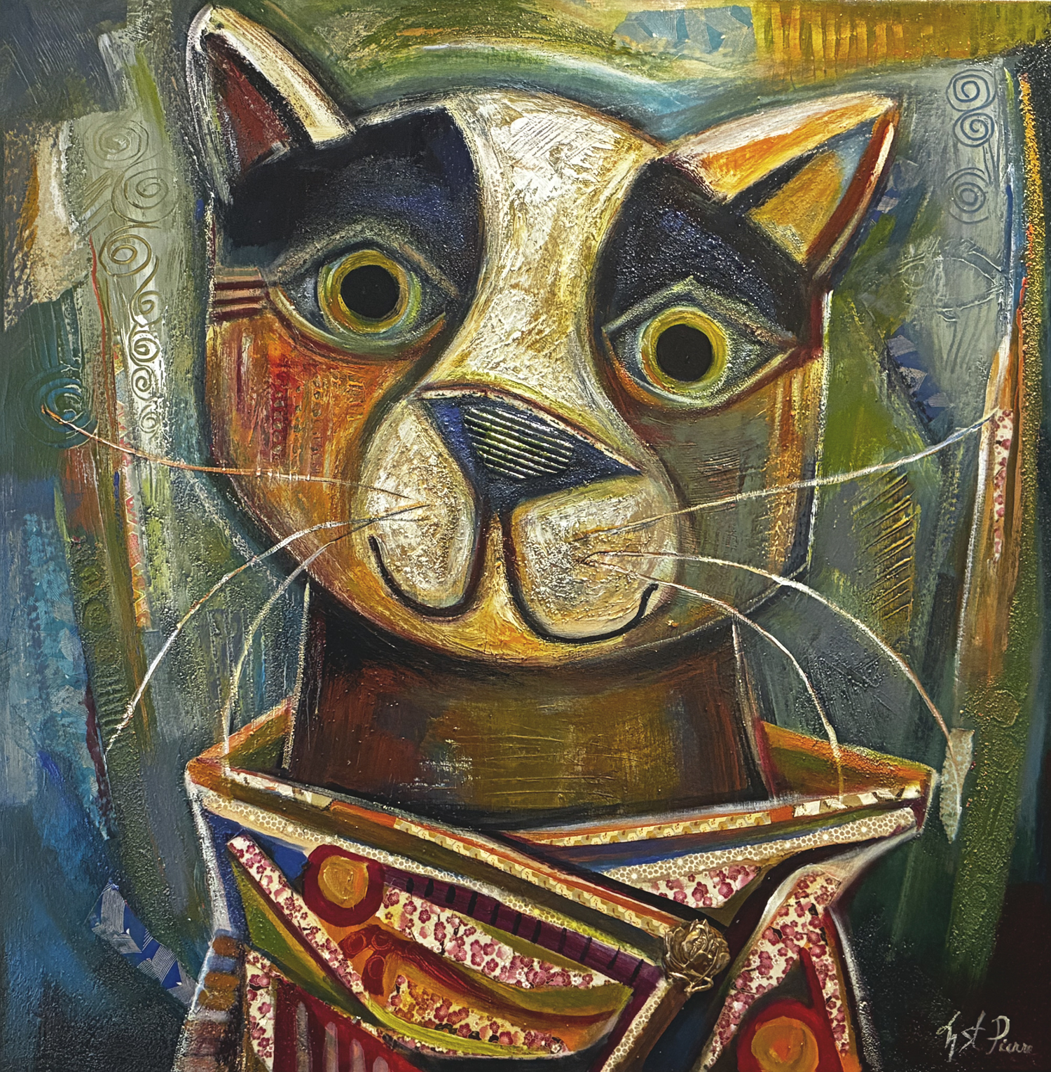 Actuellement, c’est son bestiaire allégorique qui prend de l’importance dans sa production. Sa palette, riche et colorée, est à base de couleurs primaires et secondaires découpées de blanc et de noir. La texture fait également partie des moyens qu’elle utilise pour approfondir chacun de ses sujets. Les oeuvres de Nicole St-Pierre font partie de plusieurs collections privées à travers le monde.