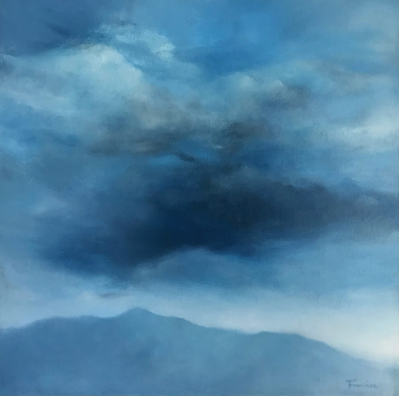“ Les paysages sont ma principale source d’inspiration. Le ciel qu’offre la nature m’a toujours fasciné et me guide dans mon travail de création. Je ne peins pas de lieu précis, je découvre petit à petit ce que mon inspiration me dicte. Je peins à l’huile à la spatule, ma technique crée des effets vaporeux et des fondus recherchés où je laisse côtoyer l’abstraction et la figuration.“