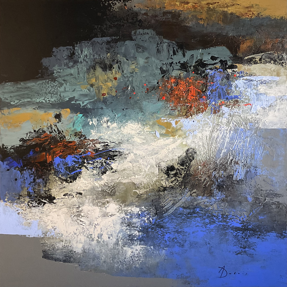 Les éléments terre, eau, air et feu prennent leur sens selon la fascination qu’ils exercent sur chacun d’entre nous. Par leur imagerie suggestive, mes tableaux traitent de la présence de ces quatre éléments générateurs de la vie sous-jacente, du bouillonnement intrinsèque et de l’introspection.