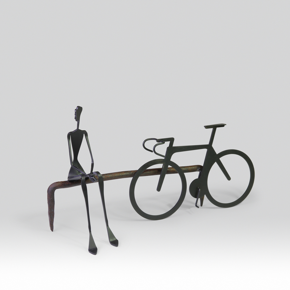 Travaillant principalement le métal, parfois associé à la pierre ou au bois, Duchesne privilégie des lignes fines et des silhouettes élancées qui suggèrent le mouvement, la fragilité et l’équilibre. Chaque pièce devient un fragment de récit où posture, tension et silence invitent le regardeur à compléter l’histoire.
