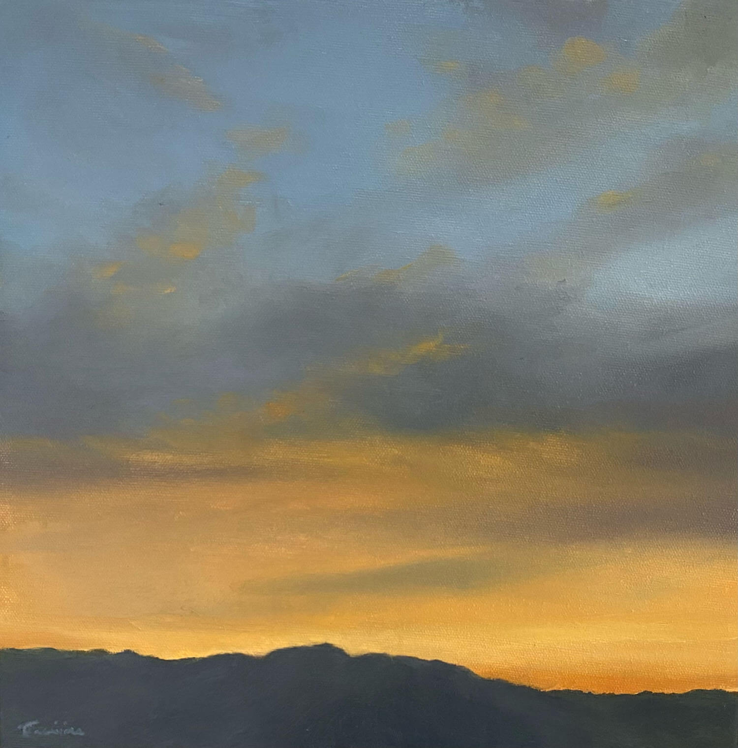 “ Les paysages sont ma principale source d’inspiration. Le ciel qu’offre la nature m’a toujours fasciné et me guide dans mon travail de création. Je ne peins pas de lieu précis, je découvre petit à petit ce que mon inspiration me dicte. Je peins à l’huile à la spatule, ma technique crée des effets vaporeux et des fondus recherchés où je laisse côtoyer l’abstraction et la figuration.“